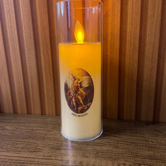 VELA ELETRÔNICA NO COPO DE ACRÍLICO SÃO MIGUEL ARCANJO 15CM (1 UNIDADE)