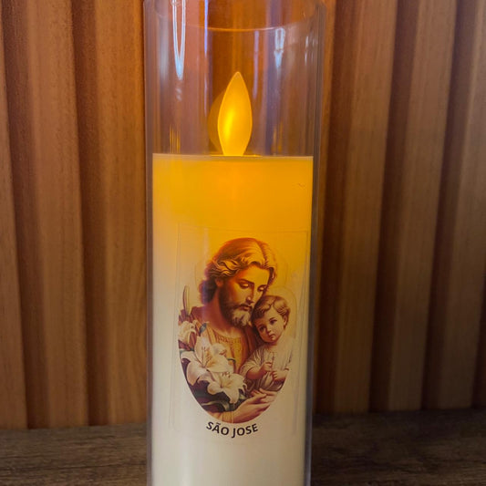VELA ELETRÔNICA NO COPO DE ACRÍLICO SÃO JOSÉ 15CM (1 UNIDADE)