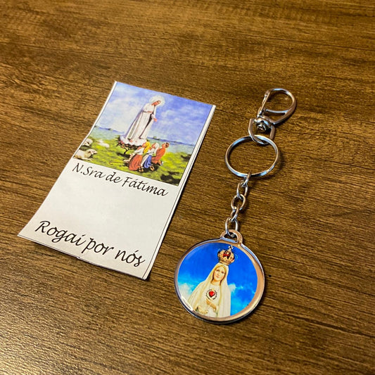 CHAVEIRO METAL DUPLA FACE COM MOSQUETE NOSSA SENHORA DE FÁTIMA (6 UNIDADES)
