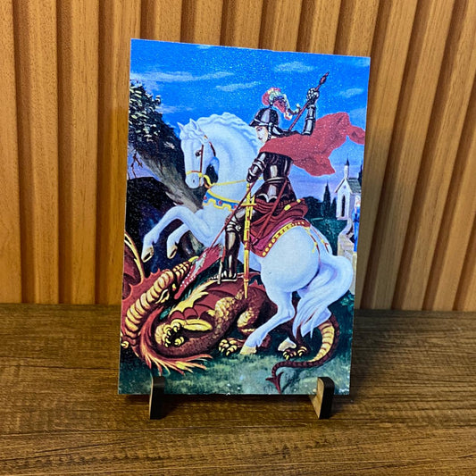 PLAQUINHA DE MESA MDF RESINADO SÃO JORGE 19CM x 13CM (1 UNIDADE)
