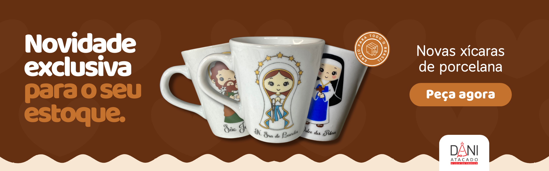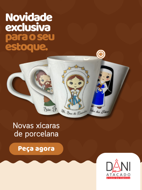 A Dani Atacado, renomada distribuidora de artigos religiosos B2B, atua há mais de 8 anos no mercado, oferecendo aos clientes uma experiência completa e segura. Nosso site abrangente garante envios seguros para todo o Brasil, alcançando pessoas em diferentes localidades com produtos de qualidade e variedade, cuidadosamente selecionados em nossa carteira de clientes fidelizados. Trabalhamos em estreita parceria com fornecedores de artigos religiosos católicos certificados, mantendo o compromisso constante com a excelência e a confiança depositada pelos nossos clientes. Localizados estrategicamente em Aparecida, no interior de São Paulo, valorizamos sua fé e dedicamo-nos a fornecer produtos religiosos que agregam significado e importância à sua prática espiritual. Convidamos você a conhecer nosso site e descobrir a ampla gama de opções para fortalecer sua devoção religiosa na Dani Atacado, onde qualidade e confiança caminham juntas para melhor atendê-lo! Venha nos conhecer, somos um dos maiores fornecedores de artigos religiosos católicos do mercado e temos os melhores preços e produtos para atender sua demanda, será um enorme prazer recebê-lo.