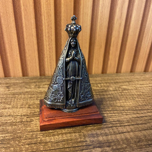 IMAGEM DE MESA METAL OURO VELHO NOSSA SENHORA APARECIDA BASE DE MADEIRA 09CM (1 UNIDADE)