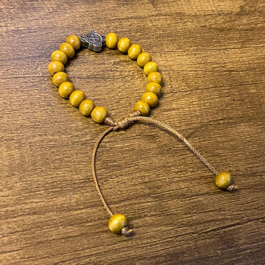 PULSEIRA DE MADEIRA MARROM REGULAVEL MEDALHA SÃO BENTO (3 UNIDADES)