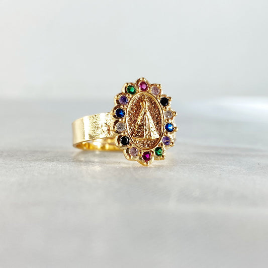 ANEL DOURADO NOSSA SENHORA APARECIDA COM STRASS (03 UNIDADES)