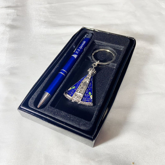 KIT CANETA COM CHAVEIRO NOSSA SENHORA APARECIDA AZUL ( 1 UNIDADE)