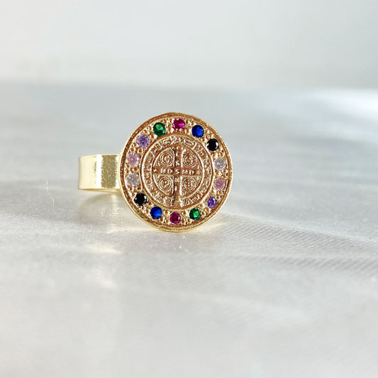 ANEL DOURADO MEDALHA SÃO BENTO COM STRASS (03 UNIDADES)