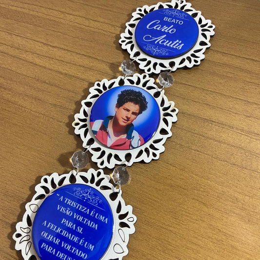 ADORNO TRIPLO REDONDO BRANCO BEATO CARLO ACUTIS MOD 1 (1 UNIDADE)