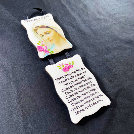 ADORNO DUPLO QUADRADO FITA MARIA PASSA A FRENTE BRANCO (1 UNIDADE)