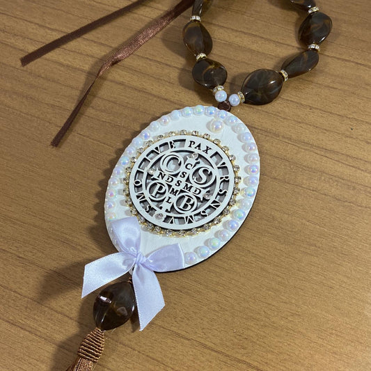 ADORNO COM PEDRARIA MEDALHA SÃO BENTO MDF E STRASS 30CM (1 UNIDADE)