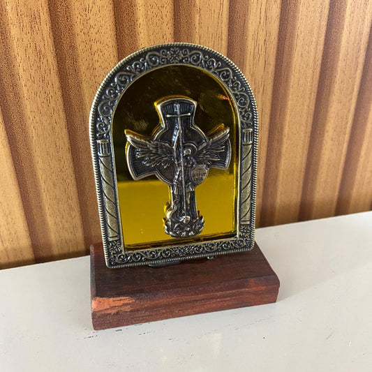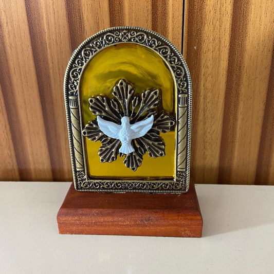 ADORNO DE MESA MADEIRA ESPELHADO DIVINO ESPÍRITO SANTO METAL OURO VELHO 9,8CM (1 UNIDADE)