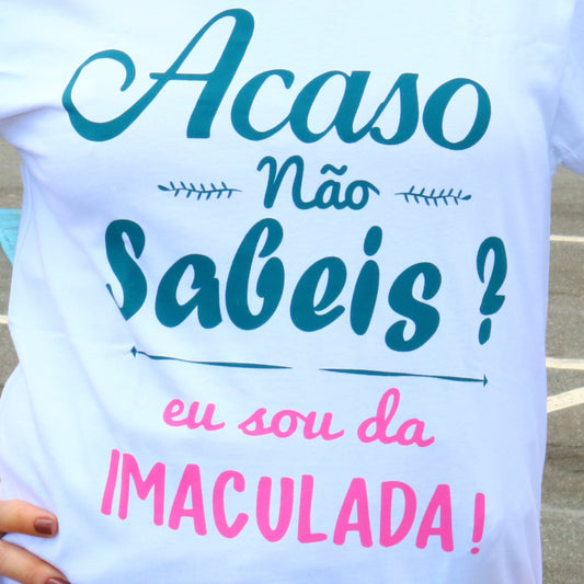 CAMISETA BRANCA EU SOU DA IMACULADA TAMANHO PP (1 UNIDADE)