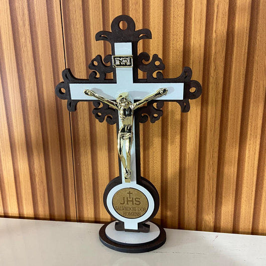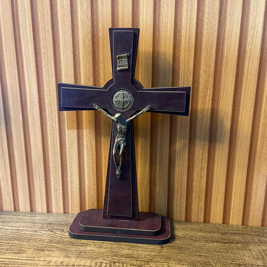 CRUCIFIXO MDF DE MESA MEDALHA SÃO BENTO 24CM (1 UNIDADE)