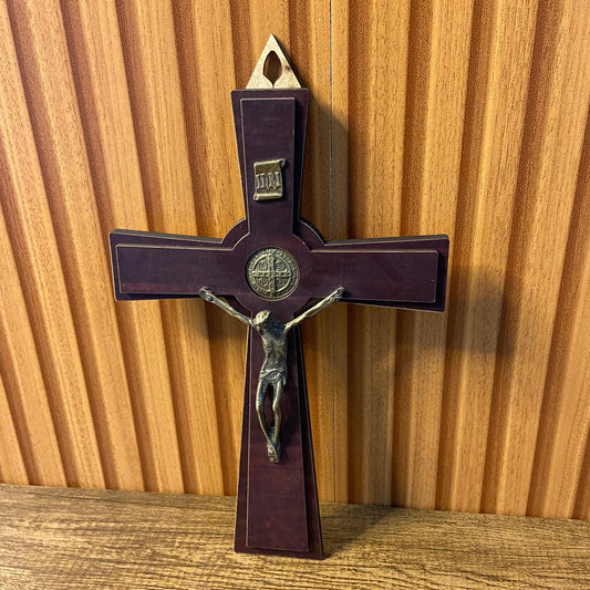 CRUCIFIXO MADEIRA DE MESA E PAREDE MEDALHA SÃO BENTO MOD2 20,5CM (1 UNIDADE)