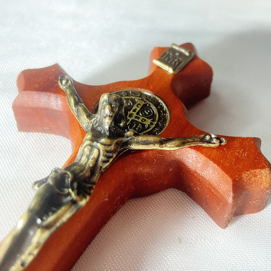 CRUCIFIXO MADEIRA DE PAREDE MEDALHA SÃO BENTO 11CM (1 UNIDADE)