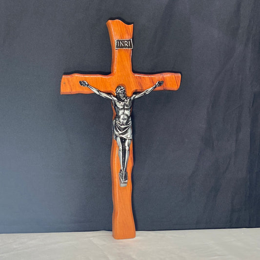 CRUCIFIXO MADEIRA DE PAREDE ONDULADO 33CM (1 UNIDADE)
