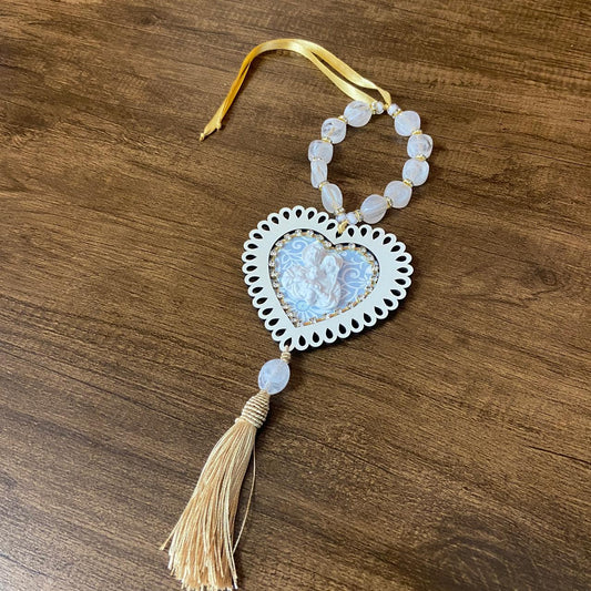 DEZENA PARA CARRO NOSSA SENHORA APARECIDA AMORA BRANCA MOD1 10MM (3 UNIDADES)