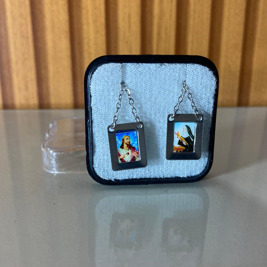 ESCAPULÁRIO INOX QUADRADO COLORIDO SAGRADO CORAÇÃO DE JESUS E SANTA RITA DE CÁSSIA (6 UNIDADES)