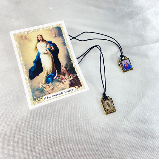 ESCAPULÁRIO CORDINHA NOSSA SENHORA DA IMACULADA CONCEIÇÃO E SAGRADO CORAÇÃO DE JESUS (12 UNIDADES)