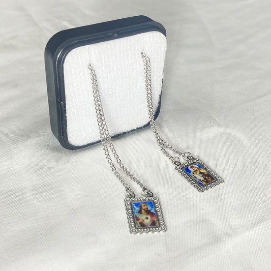 ESCAPULÁRIO INOX RESINADO COLORIDO DETALHADO SAGRADO CORAÇÃO DE JESUS E NOSSA SENHORA DO CARMO (6 UNIDADES)