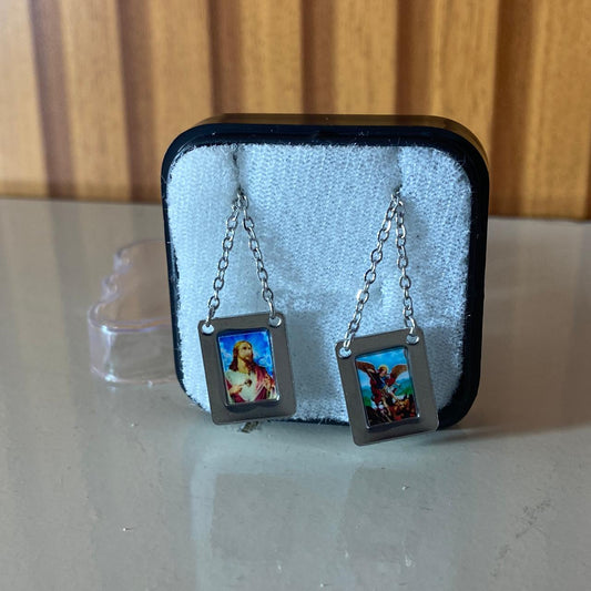 ESCAPULÁRIO INOX RESINADO COLORIDO SAGRADO CORAÇÃO DE JESUS E SÃO MIGUEL ARCANJO MOD2 (6 UNIDADES)