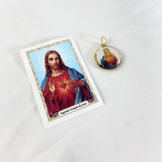 MEDALHA DUPLA FACE SAGRADO CORAÇÃO DE JESUS E IMACULADO CORAÇÃO DE MARIA (12 UNIDADES)