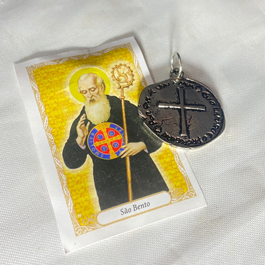 MEDALHA DUAS MEDALHAS SÃO BENTO G COM FOLHETO (12 UNIDADES)