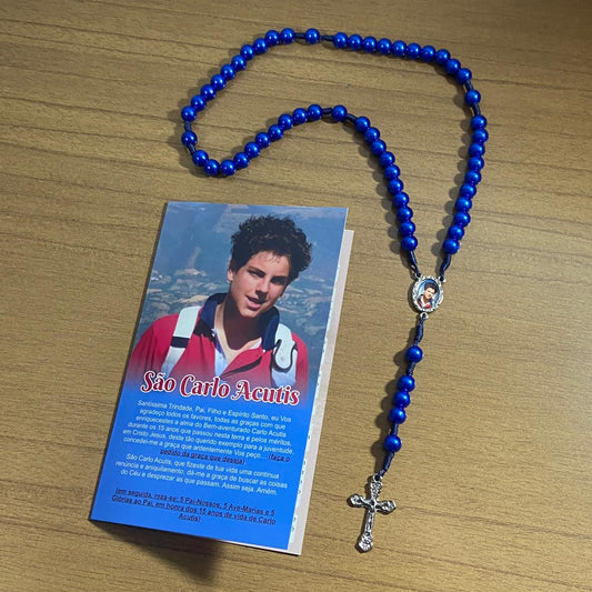 TERÇO PÉROLA AZUL SÃO CARLO ACUTIS 8MM (1 UNIDADE)