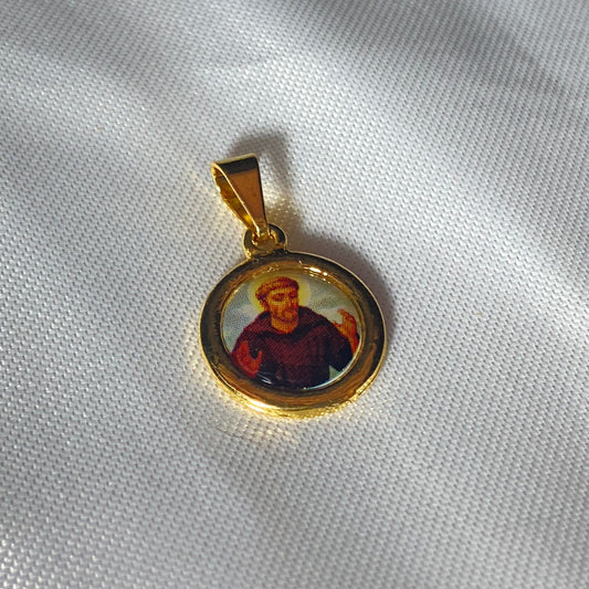 PINGENTE OURO VELHO REDONDO RESINADO SANTO EXPEDITO (6 UNIDADES)