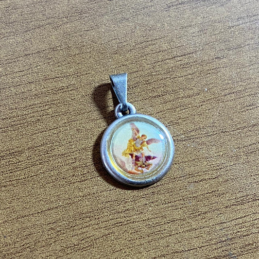 PINGENTE REDONDO PRATEADO RESINADO SÃO MIGUEL ARCANJO (6 UNIDADES)