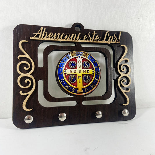 PORTA CHAVE VAZADO RESINADO MEDALHA SÃO BENTO COLORIDA 14CM (1 UNIDADE)