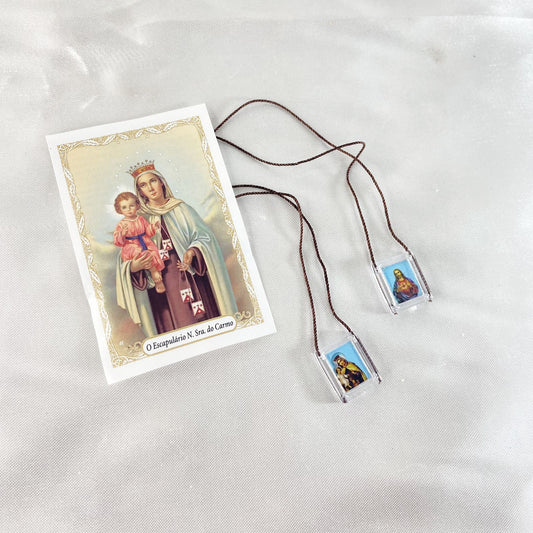 ESCAPULÁRIO CORDINHA NOSSA SENHORA DO CARMO E SAGRADO CORAÇÃO DE JESUS (12 UNIDADES)