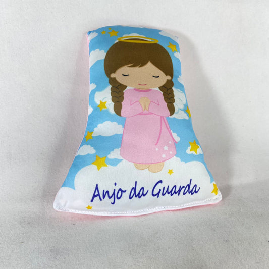 ALMOFADA PEQUENA COM ORAÇÃO ANJO DA GUARDA ROSA (1 UNIDADE)