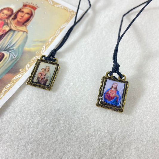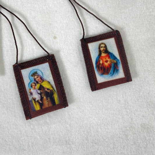 ESCAPULÁRIO DE PANO SAGRADO CORAÇÃO DE JESUS E NOSSA SENHORA DO CARMO G (6 UNIDADES)
