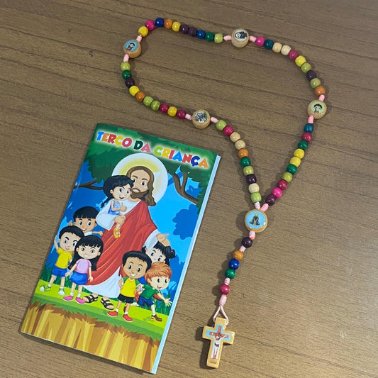 TERÇO DE MADEIRA DA CRIANÇA 5 MEDALHAS 06MM (3 UNIDADES)