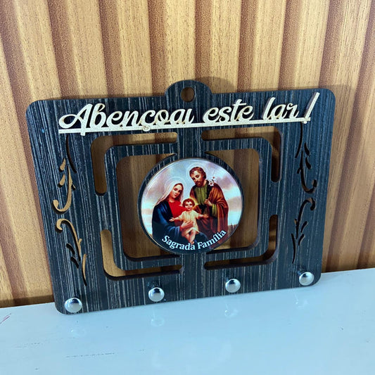 PORTA CHAVE VAZADO RESINADO SAGRADA FAMÍLIA 14CM (1 UNIDADE)