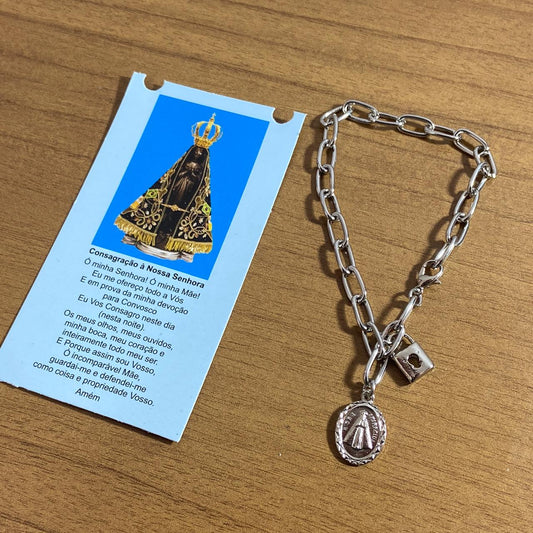 PULSEIRA CADEADO NOSSA SENHORA APARECIDA NA CARTELA (3 UNIDADES)