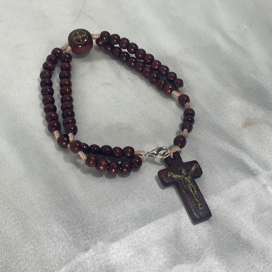 TERÇO PULSEIRA MADEIRA SÃO BENTO MARROM (12 UNIDADES)