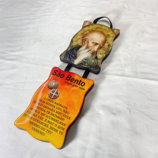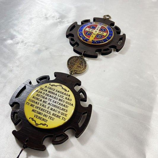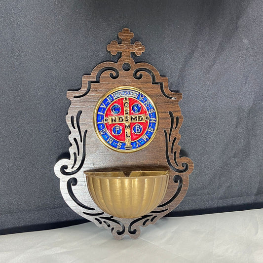 PORTA AGUA BENTA MDF MEDALHA SÃO BENTO EM RELEVO 16CM (1 UNIDADE)