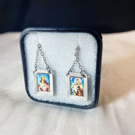 ESCAPULÁRIO INOX RESINADO COLORIDO SAGRADO CORAÇÃO DE JESUS E NOSSA SENHORA DO CARMO (6 UNIDADES)