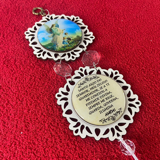 ADORNO DUPLO MINI CIRCULO ANJO DA GUARDA BRANCO (1 UNIDADE)