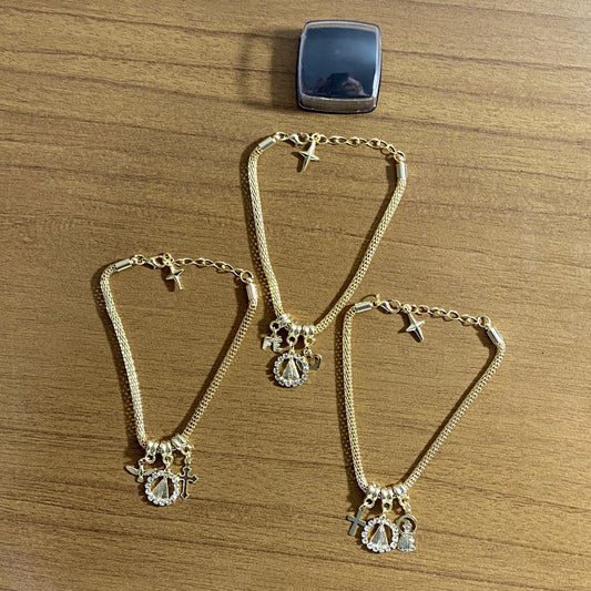 PULSEIRA DOURADA NOSSA SENHORA APARECIDA MODELOS SORTIDOS COM STRASS (6 UNIDADES)