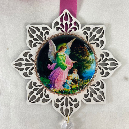 ESCAPULÁRIO DE PORTA ESTRELA BRANCA ANJO DA GUARDA ROSA (1 UNIDADE)