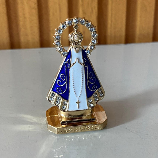 IMAGEM NOSSA SENHORA APARECIDA COM AURÉOLA PARA CARRO COM STRASS BRANCO MOD3 (12 UNIDADES)