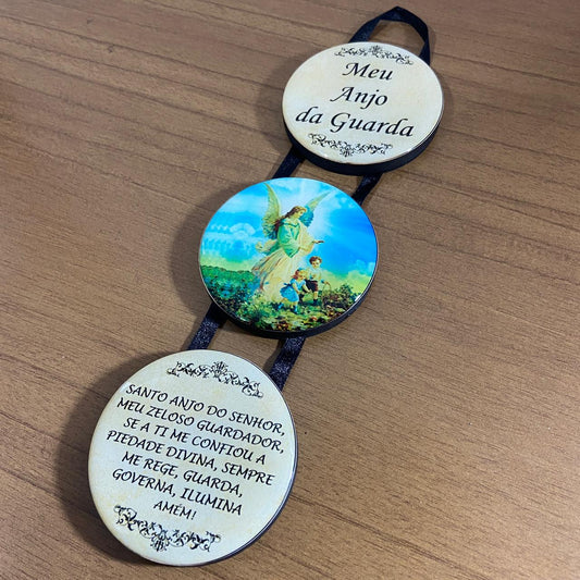 ADORNO TRIPLO REDONDO FITA ANJO DA GUARDA BRANCO (1 UNIDADE)