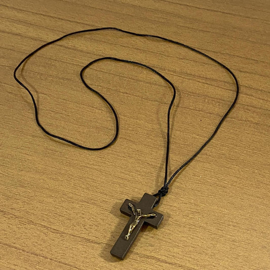 CORDÃO COM CRUCIFIXO DE MADEIRA MARROM (12 UNIDADES)
