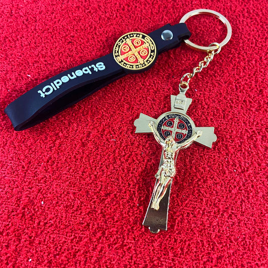 CHAVEIRO CRUZ SÃO BENTO COM FITA SILICONE PRETO (3 UNIDADES)