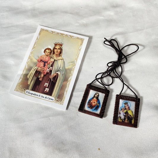 ESCAPULÁRIO DE PANO SAGRADO CORAÇÃO DE JESUS E NOSSA SENHORA DO CARMO P (6 UNIDADES)