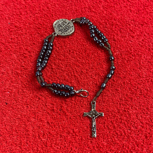 TERÇO PULSEIRA MIÇANGA DUAS MEDALHAS (6 UNIDADES)