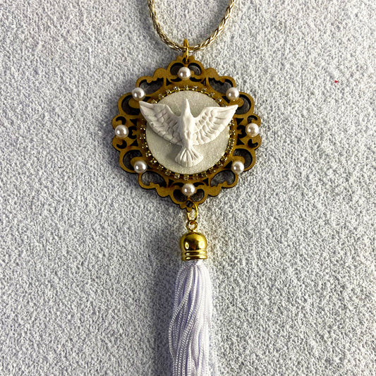 ADORNO DE CARRO DIVINO ESPÍRITO SANTO BRANCO EM RELEVO (3 UNIDADES)