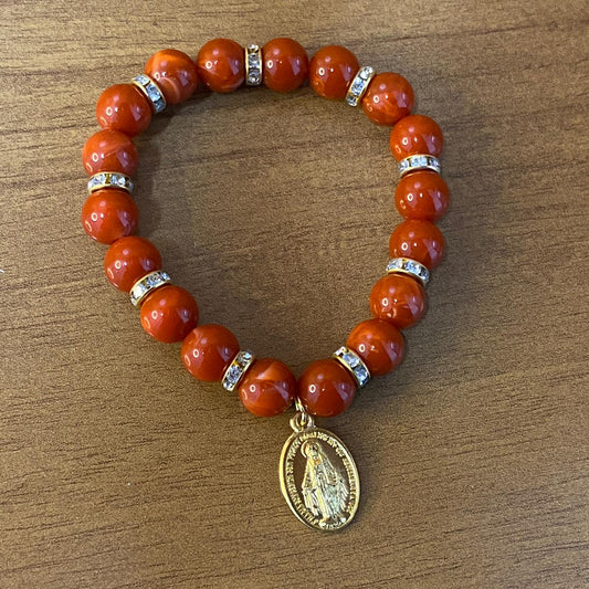 PULSEIRA DE MADEIRA COM MEDALHA NOSSA SENHORA DA IMACULADA CONCEIÇÃO (01 UNIDADE)